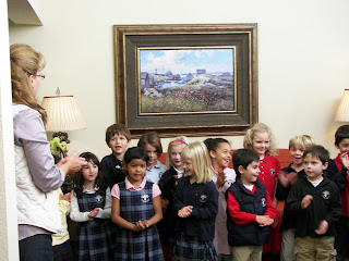 Thanks so much to Dana Wiser, kindergarten teacher from Good Shepherd School for bringing in her class. The children entertained us by singing some of their fall songs. They also made us 34 fall table centerpieces to decorate our tables in the dining room.